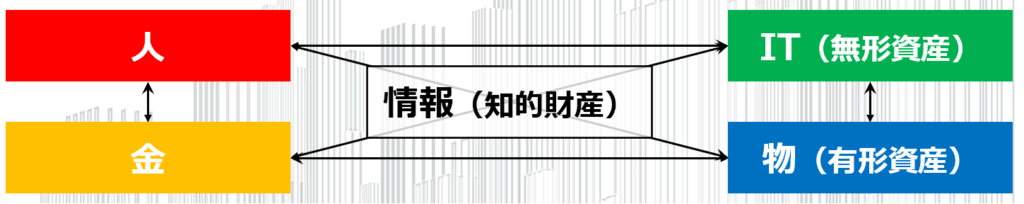 企業のリソース(経営資源)は「人」「物」「金」「情報」と言われ、昨今では「IT」が含まれました。