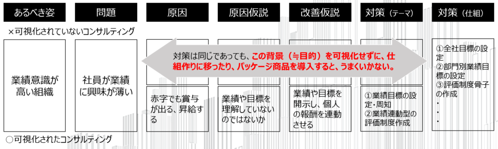 ですので、当社では出来る限り”コンサルティング”を可視化し、可能な限り分かりやすくご支援致します。